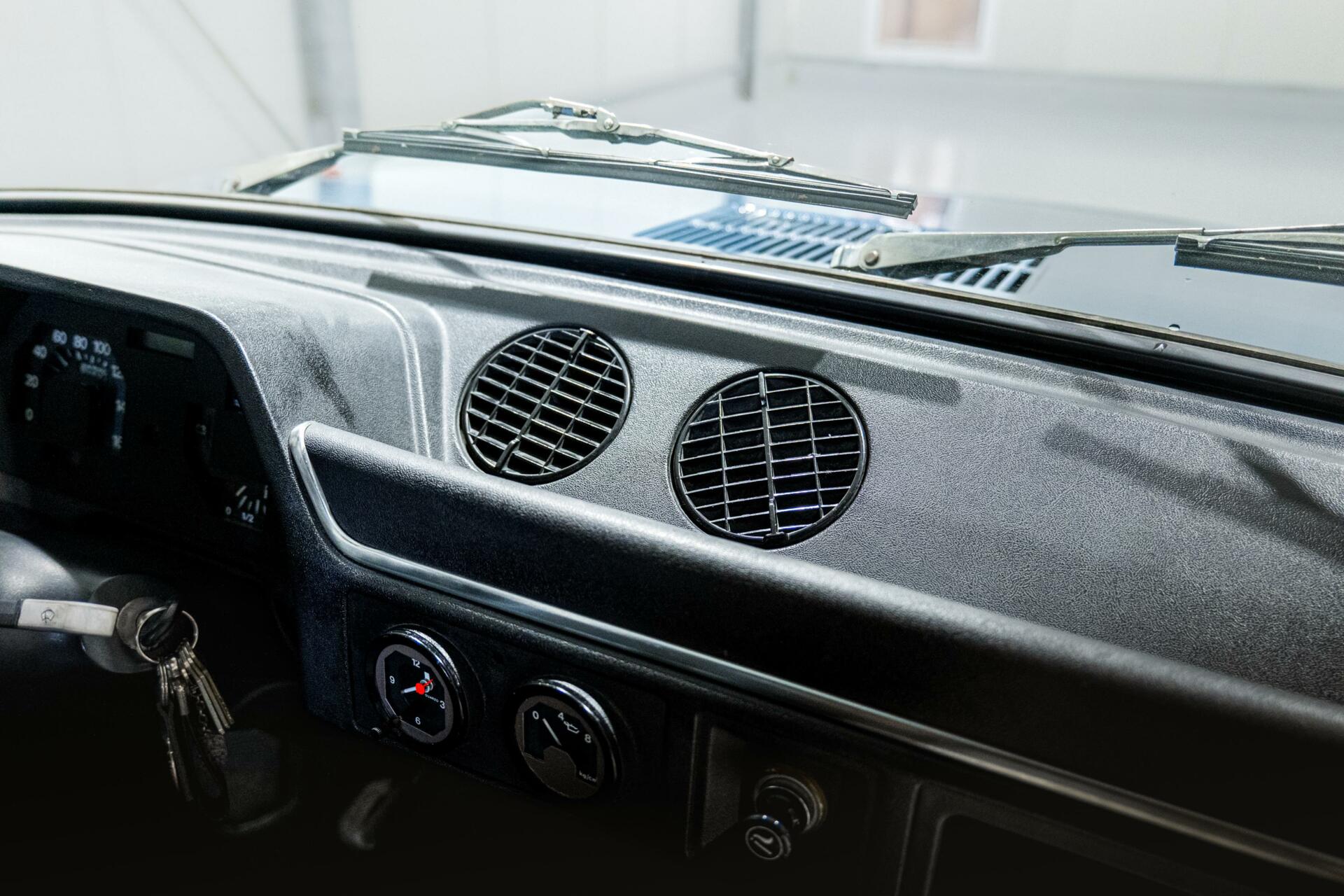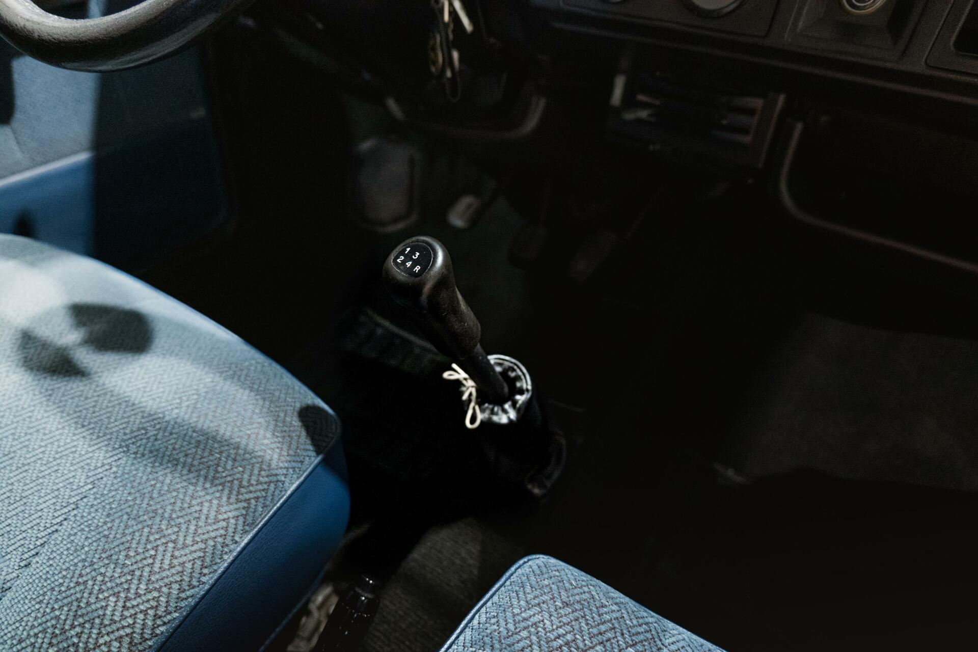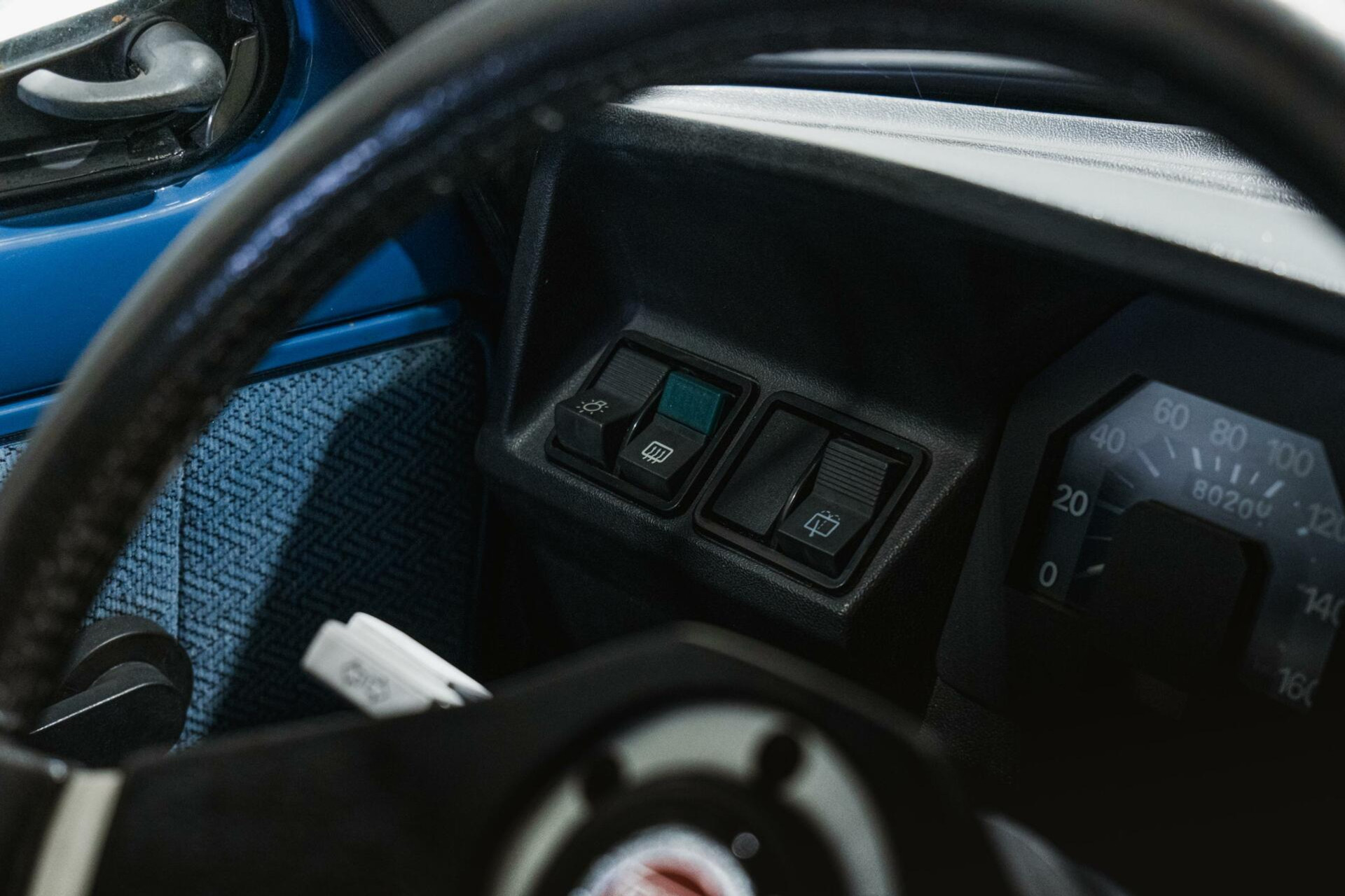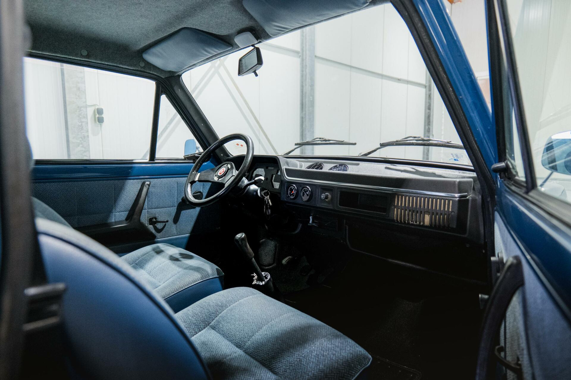 Het interieur is origineel, met blauw stoffen bekleding en de charme van de jaren ‘80 weerspiegelt.