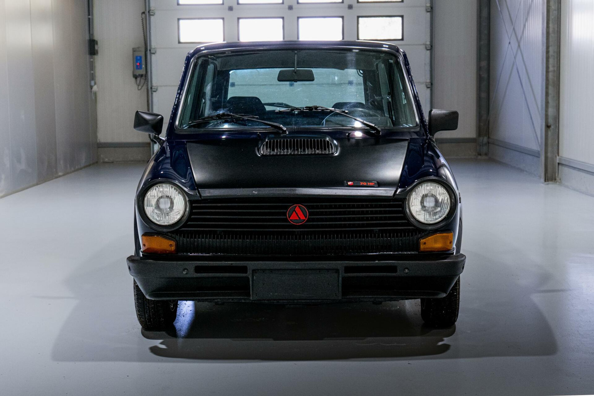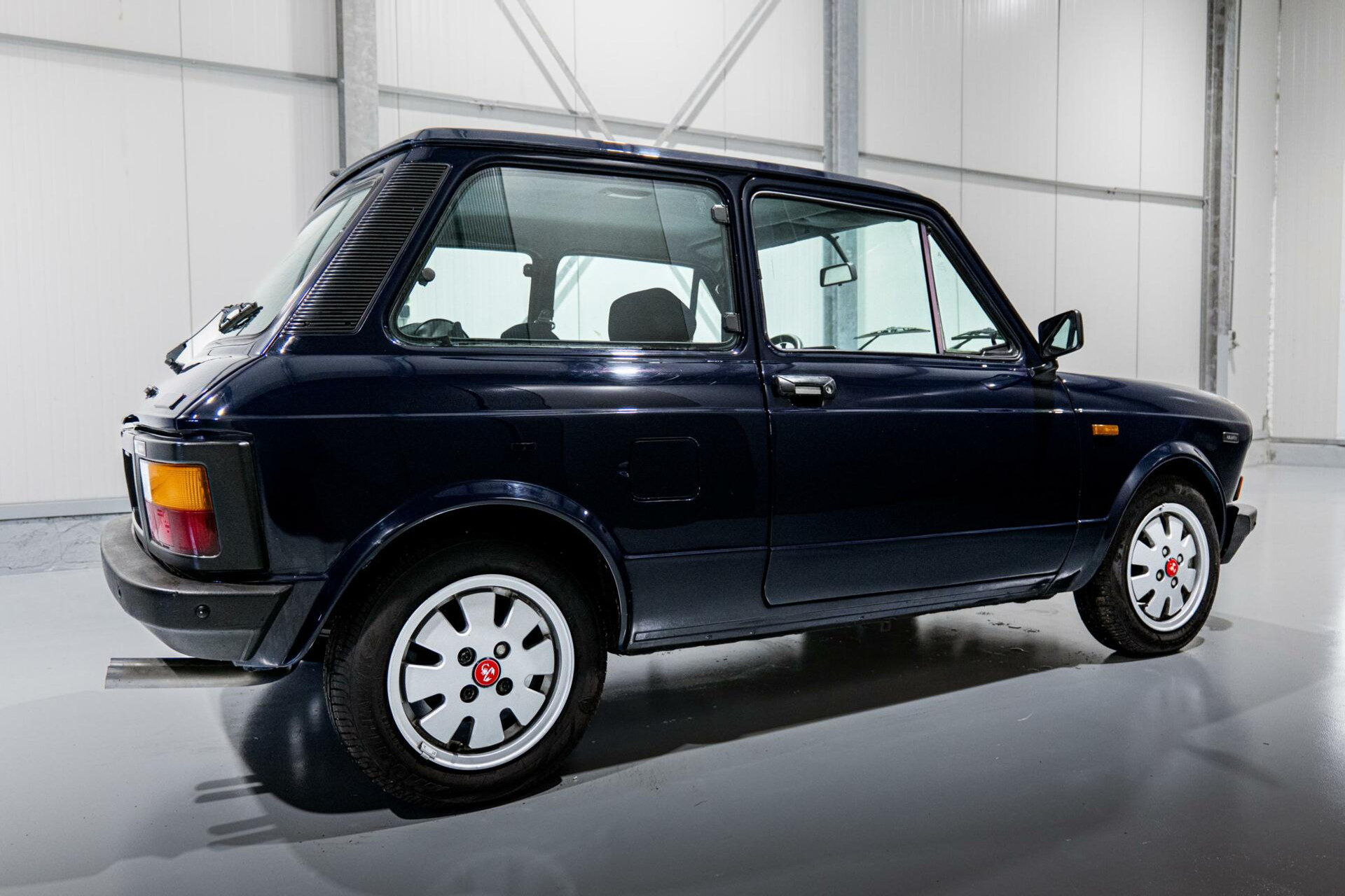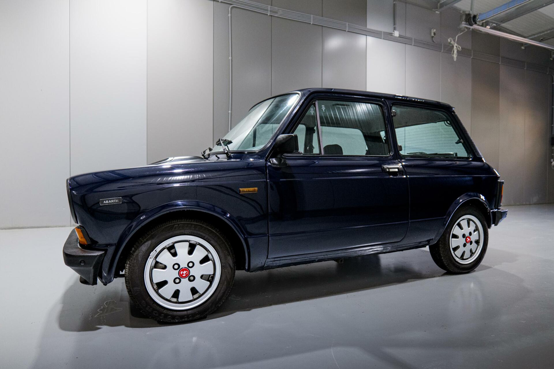 - Blauwe kleur: De blauwe carrosserie is zowel elegant als sportief, en geeft de A112 Abarth een onmiskenbare uitstraling die het model zijn iconische status heeft gegeven.